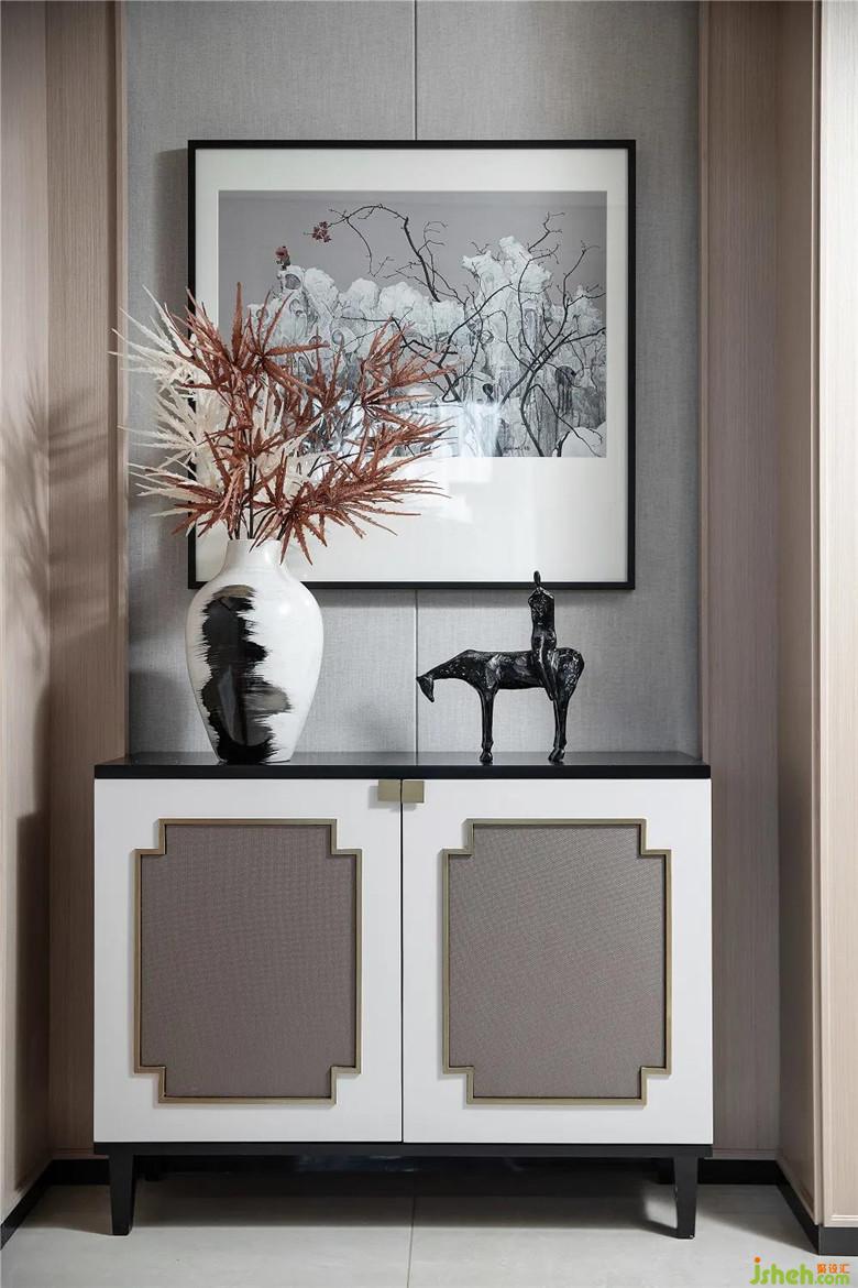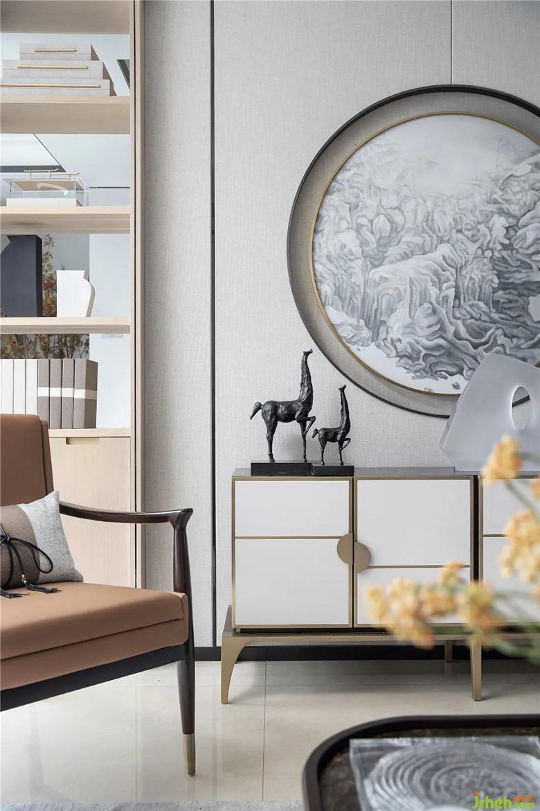 樣板房設計空間素墨色彩與紋理的相協(xié),現(xiàn)代形制中不乏綿綿古韻。清風入堂,輝光漫灑,斟上半盞清茗相鄰而坐,寧靜的不止是空間,更是心境。