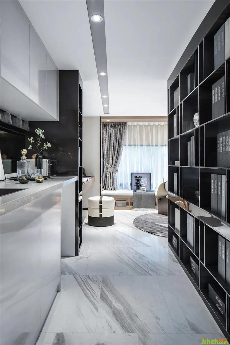 體量精巧的黑色書架,鳴奏著對空間的禮贊,