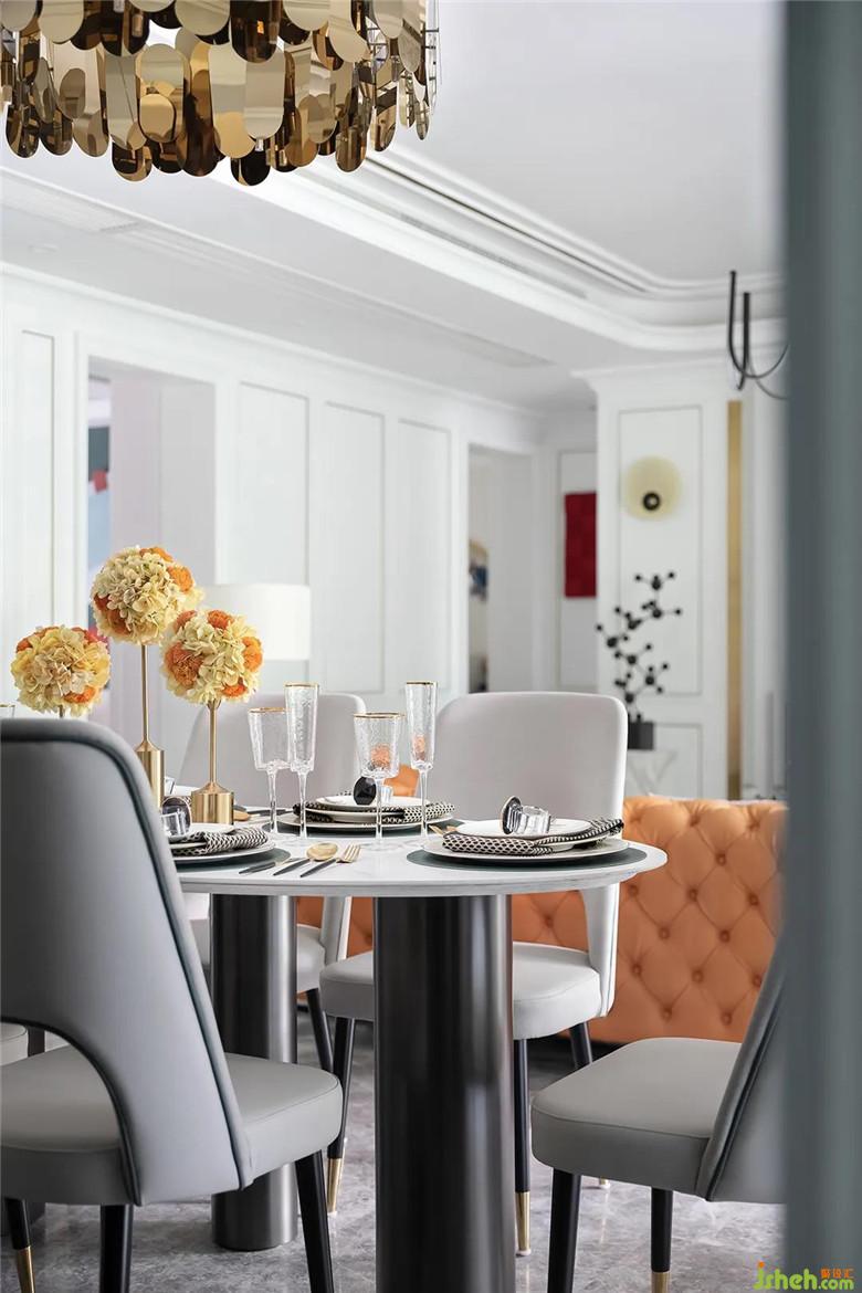 空間很大一部分的魅力來自于裝修公司將它兼容并蓄的巧妙搭配。入室,只覺鮮亮的豐盈氣息撲面而來,熨金線條平衡歐式風(fēng)格中的繁復(fù)感,輕巧漂亮的玻璃茶幾、氣息明亮的愛馬仕橙沙發(fā)使視覺亦或心跳,不覺都挑高了幾個(gè)弧度。裝修公司
