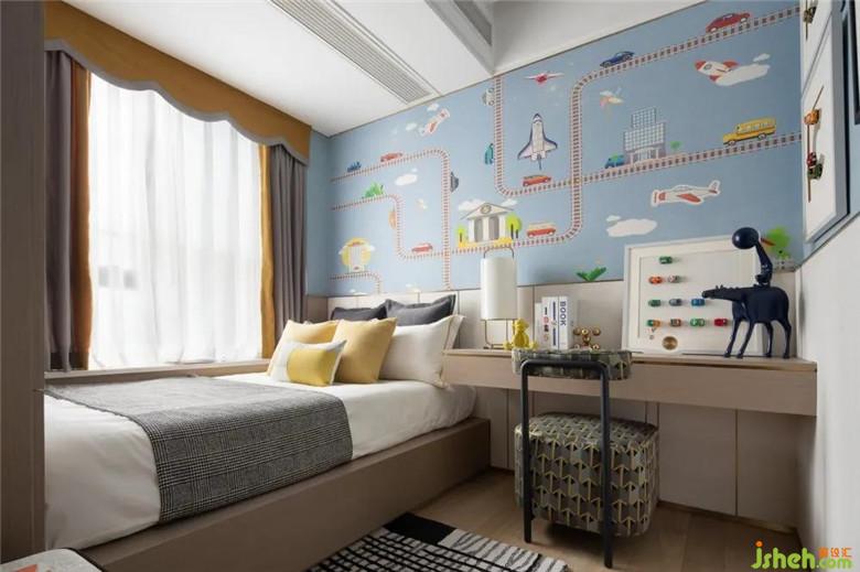 風(fēng)的流動,光的青睞,在墻面留下足跡,主臥床頭以趣味的幾何線條勾勒出個性的視覺張力,樣板房設(shè)計令空間在低飽和度的色彩中跳脫出輕靈的節(jié)奏感,生活與藝術(shù)在此靜謐融合。