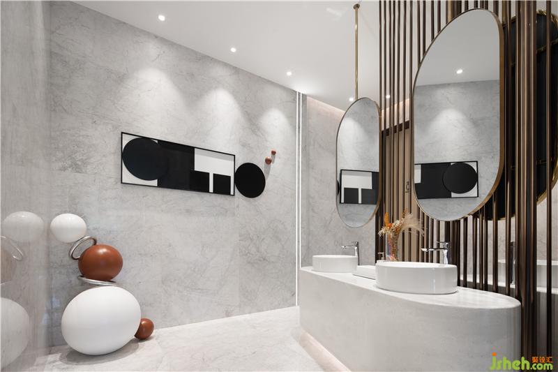 空間沒有生硬的隔斷,大面積落地玻璃幕墻引入充裕的光線,讓室內(nèi)外都能感受到整個(gè)空間輪廓,凈且靜。售樓處裝修設(shè)計(jì)在抽絲剝繭的過程中,隱藏山城地勢最自然的走線,挑空頂面帶著時(shí)空交錯(cuò)的震撼,形成“進(jìn)則生長,退則融合”的生命線。