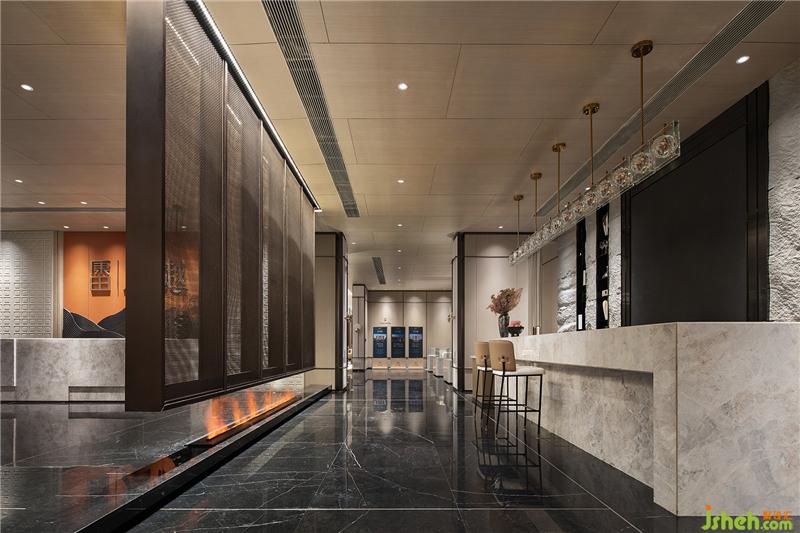 設(shè)計(jì)以一種「喧囂表像,內(nèi)隱閑情」的方式對(duì)話空間與人,只余經(jīng)美過濾后的本質(zhì)——典雅、舒適。景有浮翠星荷,扇里麥香,設(shè)計(jì)觀物取象,嵌入芭蕉扇與精美紋路的燈飾,形成精巧的時(shí)尚氣息,傳達(dá)出一種令人愿意親近且感到愉悅的氛圍。
