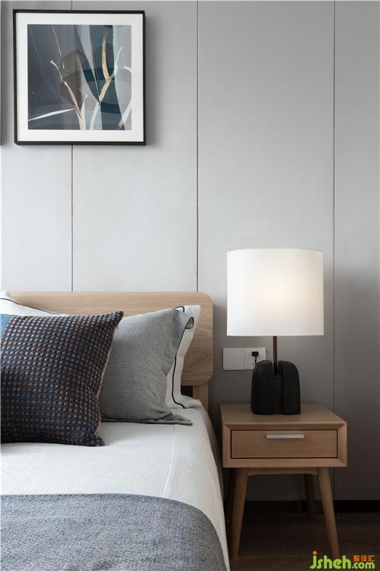 留足思緒,讓純凈在此處律動(dòng)。潛藏其間的是高級(jí)而不浮華的生活方式,木地板與淺灰的護(hù)墻圍護(hù)空間的體塊,讓空間更顯柔和,黑色臺(tái)燈與云朵質(zhì)感般的床品,演繹夢(mèng)中的藍(lán)色多瑙河……