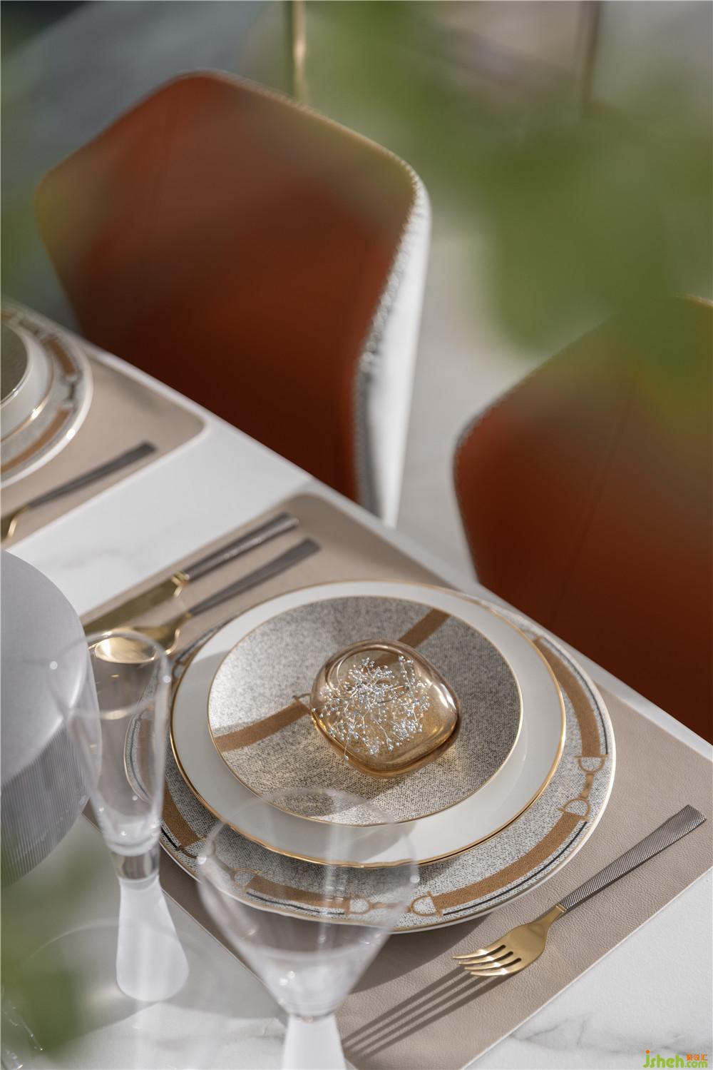 春去秋來,晨昏日暮,餐廳利用光澤的瓷器、餐具編織著屬于這處空間的優(yōu)雅,線性燈飾,簡潔而不失高級(jí),爛漫的紅葉與大面積灰鏡增添了空間趣味感,不中斷夢(mèng)境的延續(xù)......
