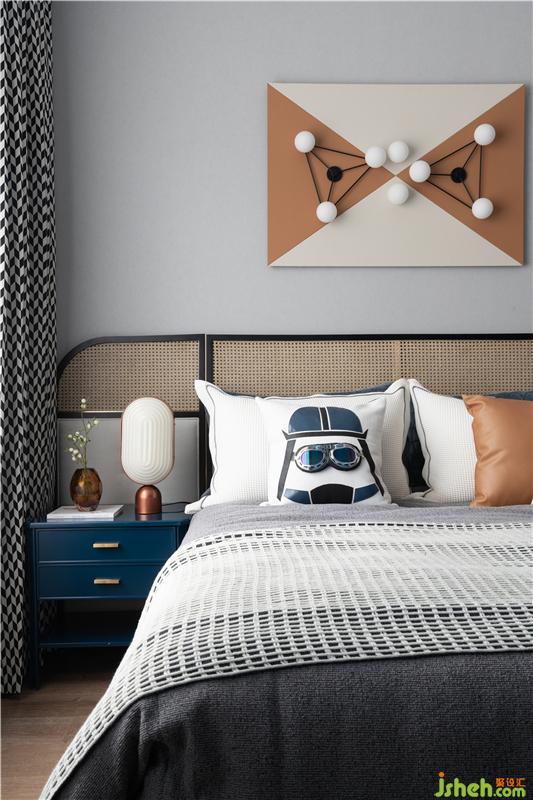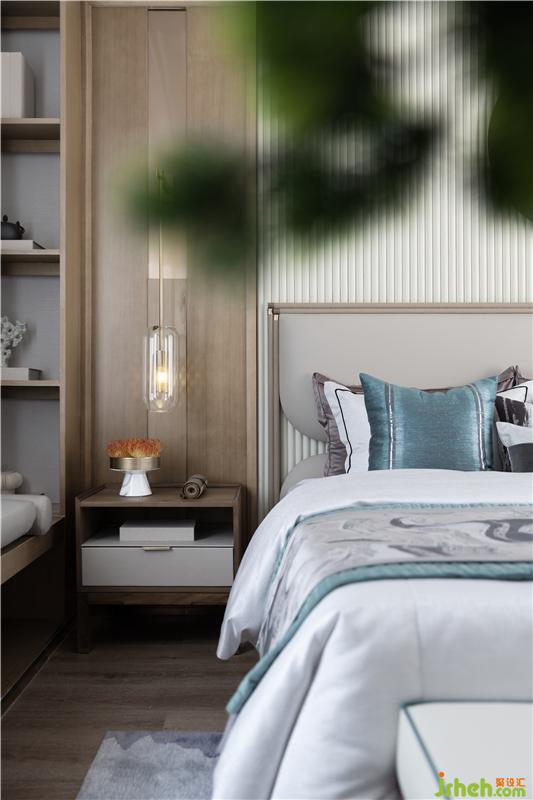 將云霞雕色,轉(zhuǎn)化成馥郁沉穩(wěn)的一方寢居,精致與溫柔,俊朗與活潑,都不乏其中。黃銅背景墻正如潑墨堆棧的畫幅,讓清雅與古樸在空間滌蕩。