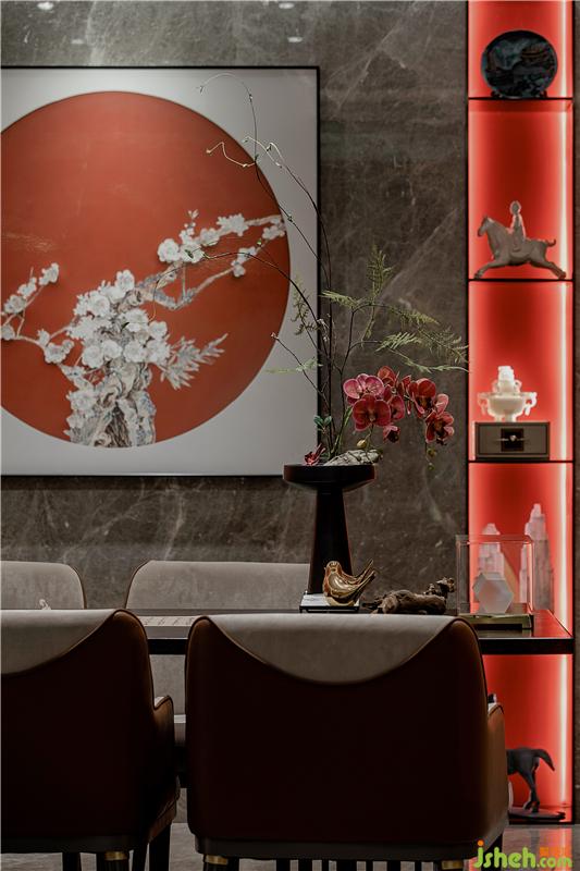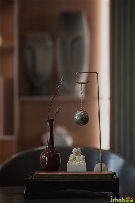 負(fù)一層,紅藍(lán)色的跳色,加入整個(gè)空間,顯得生動(dòng)有活力,更具有藏品室的氣質(zhì)。會(huì)看花的人,就會(huì)看云、看月、看星辰,并且在人世中的一切看到智慧。當(dāng)習(xí)習(xí)晚風(fēng)、夜幕穹頂,選擇沐浴更衣、焚香靜讀,在這樣一處同樣雅韻備至的空間,顯露自己的優(yōu)雅情致、表達(dá)著對生活的衷心虔誠。