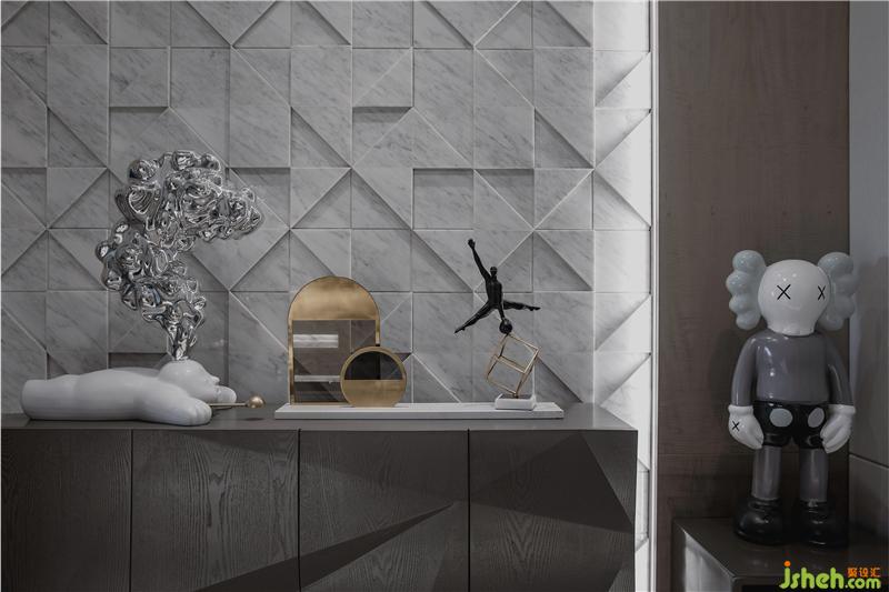 光連接了建筑和風(fēng)景,落地玻璃與層高挑空表達(dá)出空間的光影質(zhì)感,令窗外景致一覽無余。大理石紋理釀雅韻,靈動(dòng)視覺見風(fēng)云。以白色,灰色為基調(diào),淺色壁紙,皮革及金屬為點(diǎn)綴,整體感受沉穩(wěn)并具有品質(zhì)感,使得整個(gè)客廳在天地之間盡顯“四兩撥千斤”的從容感,為我們輕松營造開闊又含蓄、別有一番滋味的雅韻會(huì)客格局。