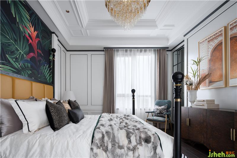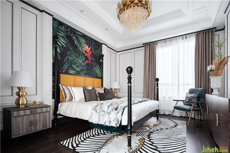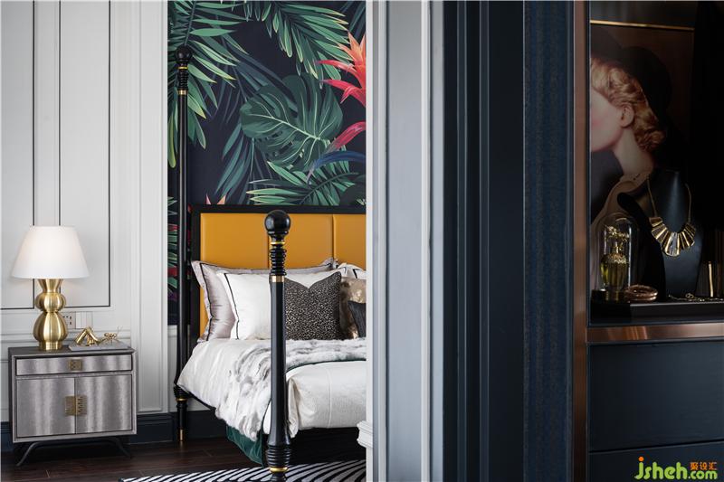 溢美之詞繼這處氣質空間溢出,墻面裝飾植物背景,自然與空間的美感融合一體,近景遠景都有美的存在。沉穩(wěn)深藍與高級黑搭配,演繹衣帽間專屬優(yōu)雅,點綴的金屬跳躍在空間中,增添一絲時尚與輕奢。