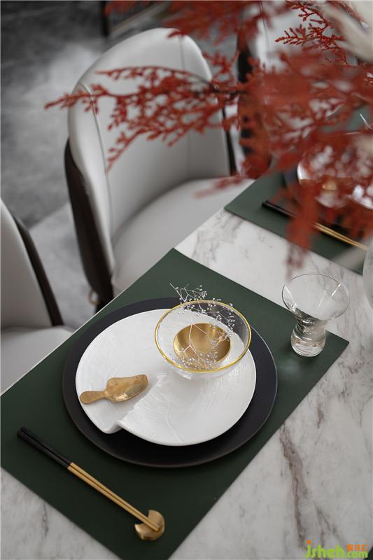 空間樣板房設(shè)計(jì)以干凈的黑白灰為大基調(diào),以銅綠色點(diǎn)綴