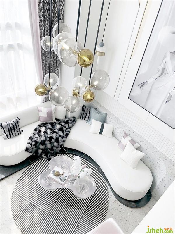 來此,腳步且跟隨燈光放緩。感受細(xì)膩的素白沙發(fā)與墻面在空間中的溫柔對(duì)話。