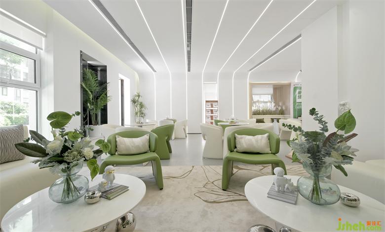 未來、科技是萬物互聯(lián)的時代基礎(chǔ)。品牌區(qū),沙盤與洽談區(qū)相互呼應(yīng),一覽城市未來愿景。人人參與共建的新區(qū)藍圖,在空間語意的轉(zhuǎn)譯中傳達。樣板房設(shè)計形式和功能還應(yīng)加入精神的統(tǒng)一,而藝術(shù)裝置就是精神的載體,舒展蔓延,綠植鑲嵌,讓未來的多元可能融入日常公共生活。