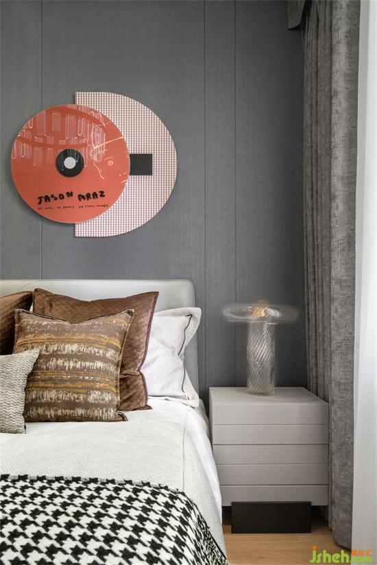 主臥的設(shè)計(jì)延續(xù)空間的整體基調(diào),以自由舒適的尺度與簡(jiǎn)約干練的色調(diào),調(diào)和出寧?kù)o雅致的居住氛圍。隨氛圍漸入到平和溫馨的生活節(jié)奏里;同時(shí)點(diǎn)綴橙色,從視覺(jué)上豐富層次,也溫暖了空間,色彩上一素一暖,一抑一揚(yáng),在開(kāi)放的格局里,暗示著不同的功能與氛圍屬性。