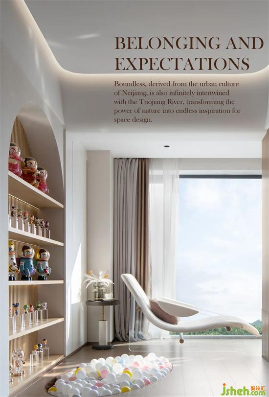無界,源于內(nèi)江大千文化的城市文脈,亦在與沱江的阡陌縱橫中無限交融,把自然的力量轉(zhuǎn)化為空間設(shè)計(jì)的無盡靈感。