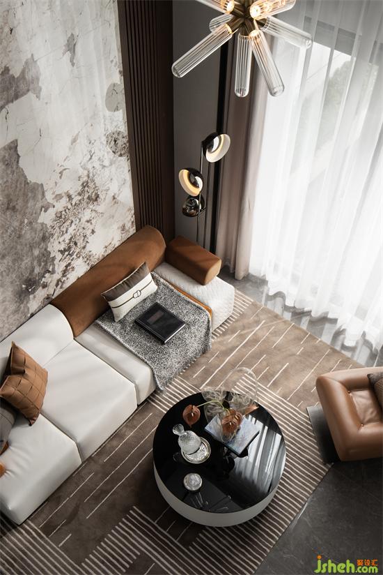 設(shè)計(jì)與審美隱于生活方式,釋放大宅風(fēng)度,陽(yáng)光從窗外漫游而進(jìn),在墻上折射出神秘光暈,仿佛徑自向后不斷延伸而去,所有顏色都在強(qiáng)調(diào)空間景深布局,尋求基于理性之上的感性演繹。樣板房設(shè)計(jì)在簡(jiǎn)單輪廓的空間整體中,入宅即映入眼簾的裸色主色調(diào),綴以貼合大地系的荷蘭橙、原木色,月白,暖灰等還原源自生活的溫柔肌理,這毫不費(fèi)力的真實(shí)與高級(jí)感,為其注入生活美學(xué)的精神內(nèi)核。