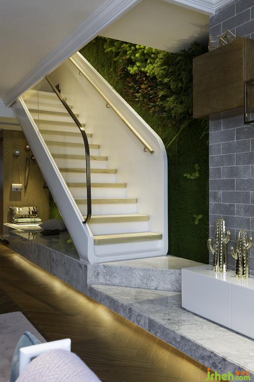 復(fù)式空間,樓梯往往是平衡上下層最為重要的功能流線,設(shè)計(jì)師讓樓梯間與二層公區(qū)都沒有被生硬劃分的感覺。