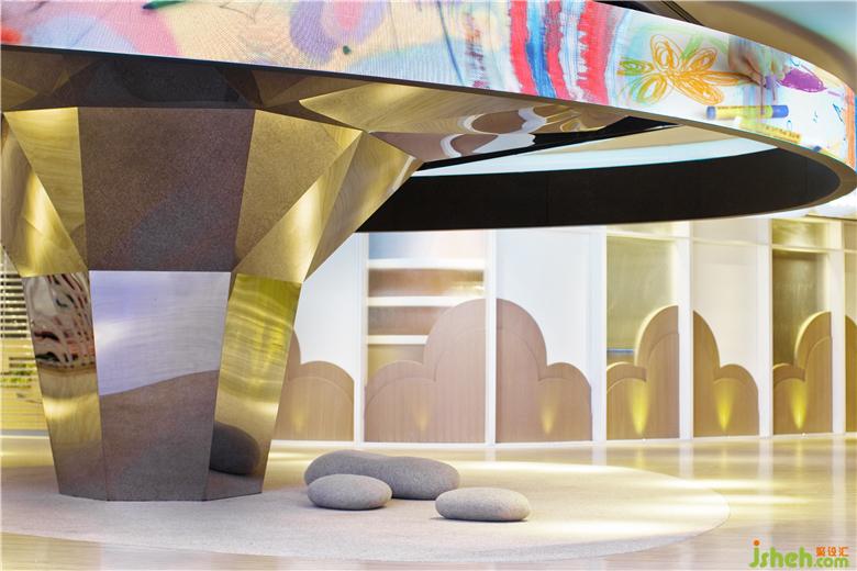 “Donut Playhouse”包括三個(gè)主要區(qū)域:身體,智慧和心靈。從兒童的角度出發(fā),基本的點(diǎn),線,面元素組成了不同的空間功能:分別為運(yùn)動(dòng)空間,學(xué)習(xí)空間及表演空間。我們通過內(nèi)省,探索和發(fā)掘來培育成長中的孩子,室內(nèi)兒童樂園設(shè)計(jì)以提高他們的體格,思想和精神素質(zhì)。公共設(shè)施包括禮賓臺(tái),座椅及導(dǎo)示系統(tǒng)均按照兒童人體工學(xué)需求而設(shè)計(jì)。親子洗手間為成人和兒童的身高量身打造:廁格,洗手中島,男洗手間內(nèi)的”Co-wee-wee”區(qū)域均經(jīng)過專門設(shè)計(jì),可提供以用家為本,有趣且超越期望的體驗(yàn)以建立更緊密的人際關(guān)系,這都是童趣和增進(jìn)孩子自尊心的體現(xiàn)。