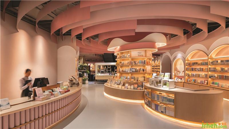不同的曲線組合創(chuàng)建了具有不同隱私級別的閱讀區(qū)域。閱讀洞穴使父母和孩子可以專心讀書。兒童書店設(shè)計圓型特色柱提供了主題產(chǎn)品展示和座位功能,并成為每個區(qū)域的焦點。