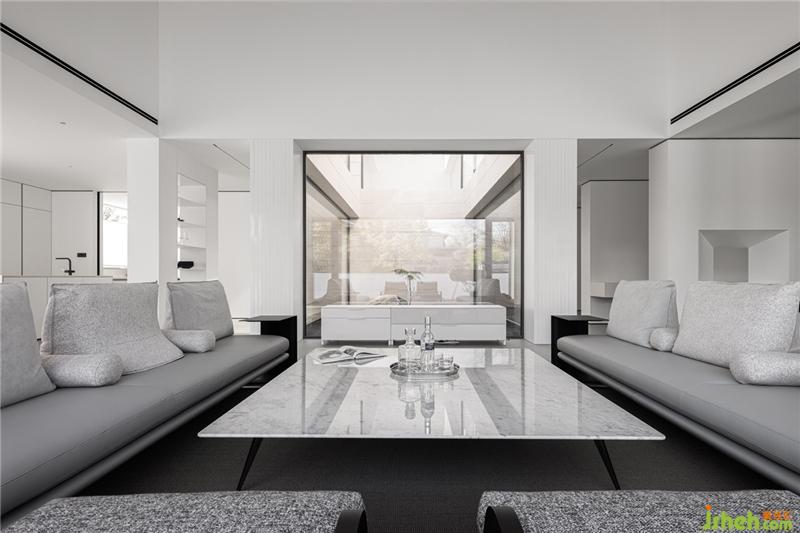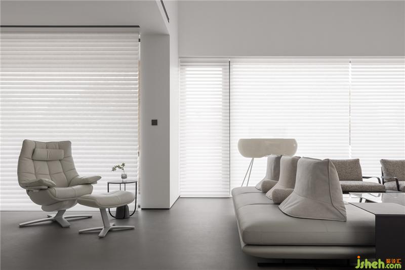 為了貫徹安靜純粹的生活理念,設(shè)計(jì)師在空間的材質(zhì)與色彩的選擇上采用簡(jiǎn)單、自然的風(fēng)格來(lái)裝飾,如黑白灰三色及大理石的運(yùn)用;其次,在室內(nèi)多處地點(diǎn)放置了盆栽綠植,打破了空間的沉悶感。造型方面,用極簡(jiǎn)線條來(lái)構(gòu)建空間結(jié)構(gòu),大面積的留白也讓空間看起來(lái)干凈清爽。