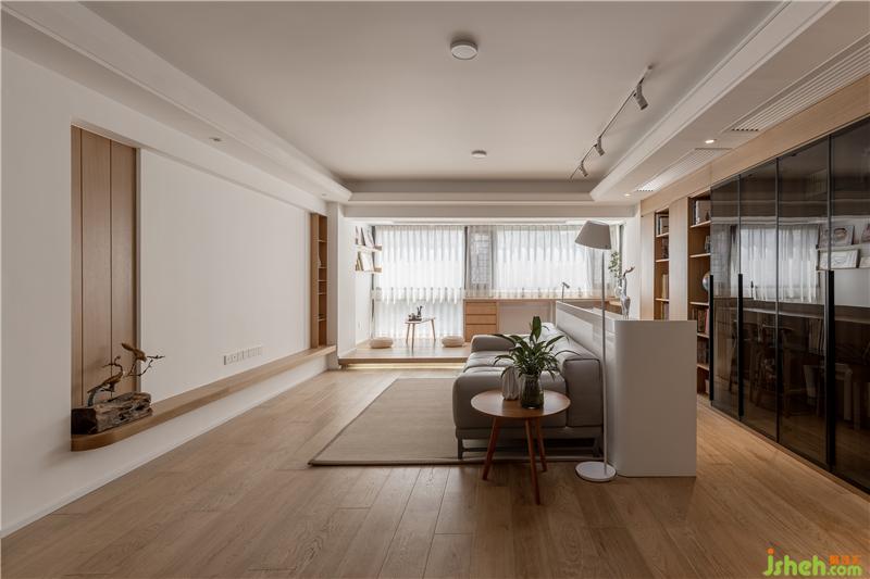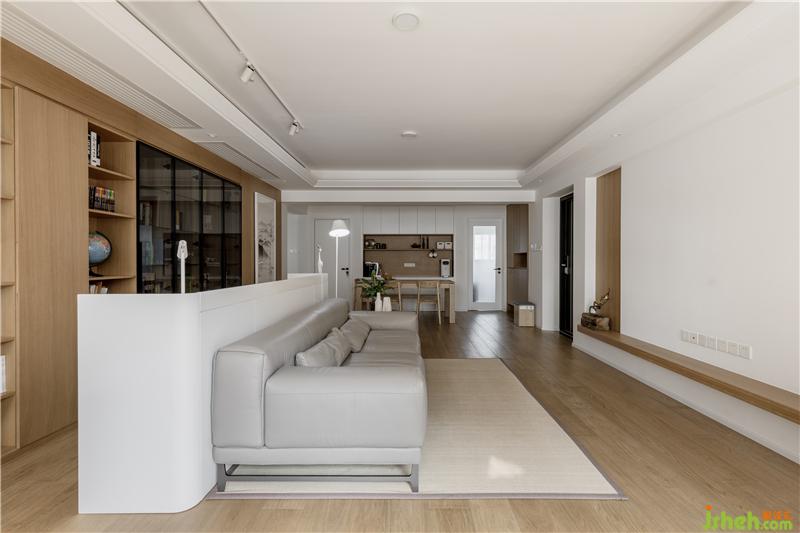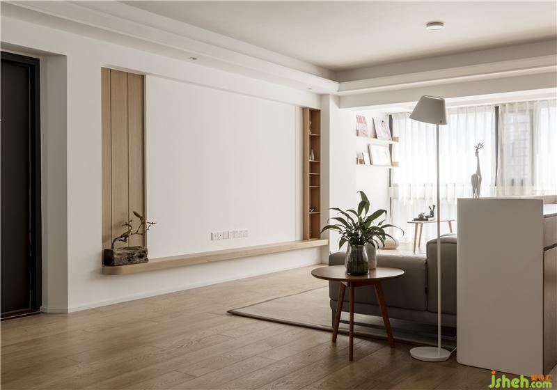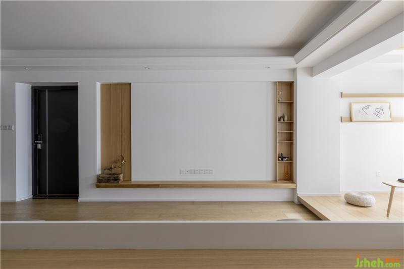 入戶沒有玄關(guān),左右兩邊分別是餐廳和客廳。全屋木地板鋪設(shè),白+木紋淡淡的日式溫馨設(shè)計。