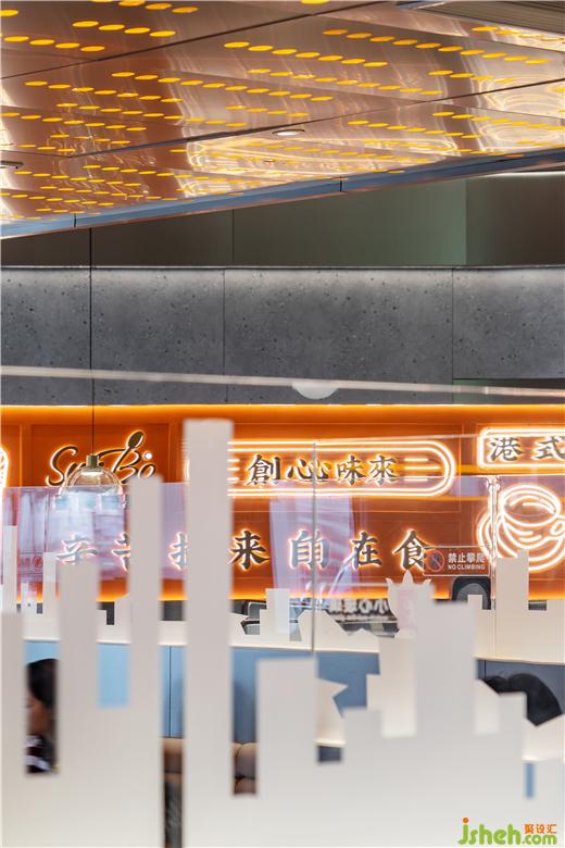 天花的設(shè)計采用生態(tài)主義,綠植垂直而下讓室內(nèi)的空間顯得生機勃勃,茶餐廳設(shè)計也象征著餐廳充滿生機,寓意著生意蒸蒸日上。簡約的金屬吊燈以及其他的燈帶都屬于暖色調(diào),讓整個就餐氛圍更溫馨。茶餐廳給人傳遞的是一種舒適休閑的感覺,所以要注重色彩的亮度,尤其在燈光或者裝飾材料上,茶餐廳設(shè)計以暖色系居多,明亮的燈光有刺激用餐者食欲的功效。