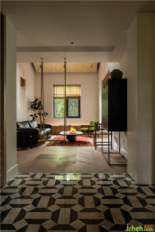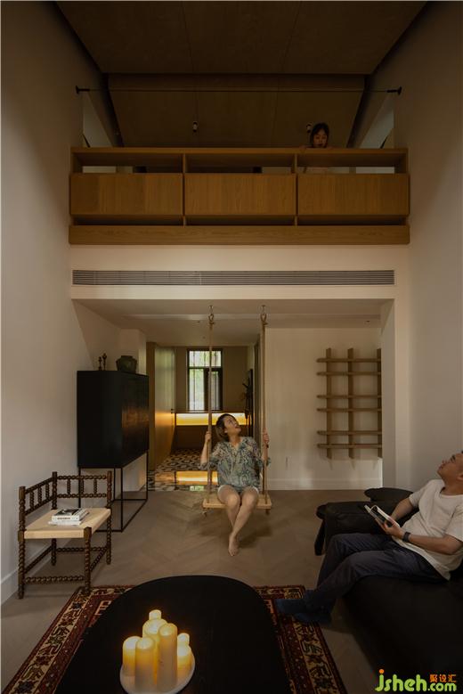 家是一個(gè)需要溫度的場所,設(shè)計(jì)可以賦予它更多的平和、愉悅、分享等情感。作為生活最直接的反饋,家不需要約定俗成的風(fēng)格和看似理智的設(shè)計(jì),它應(yīng)當(dāng)是家人們釋放情感、找尋自由的寄托。一層是家的主場,以中軸劃分好左右兩部分較大的空間,左側(cè)是開放的餐廚空間,與客廳互通,在這里可以常??吹揭患胰随覒虻纳碛翱蛷d中有個(gè)秋千,玖玖?xí)谏厦鎿u搖晃晃的長大,童顏童語,笑聲連連。右側(cè)是獨(dú)屬于叁叁媽媽、毛毛爸爸的一體化的套房空間。