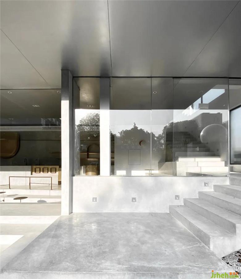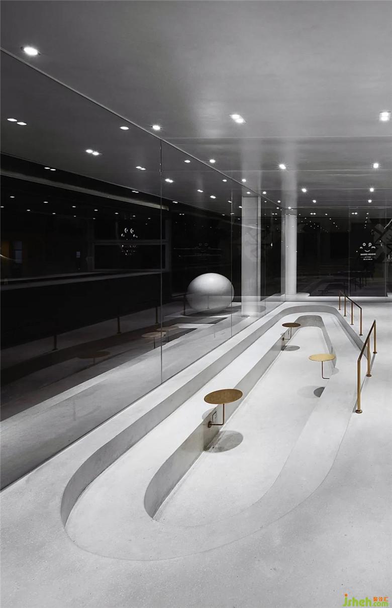 空間構(gòu)思從鏡頭、快門、相機(jī)皮腔出發(fā)作為三大基本樣式,裝修公司以此展開延伸,將6m*16m的體塊部分作3層劃分,依次為:MOOM DRINK; 攝影學(xué)院;攝影工作室。MOOM DRINK區(qū)域以大面積的鋁板與玻璃作為主要材質(zhì)以獲得極具現(xiàn)代感的空間質(zhì)感,形成整個(gè)品牌的第一視覺體驗(yàn)。