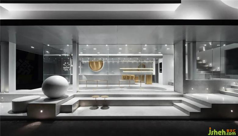 夜晚從外部觀察,整個(gè)一層成為一個(gè)透明的發(fā)光體,裝修公司使建筑呈現(xiàn)懸浮的狀態(tài),營造出具有強(qiáng)烈記憶點(diǎn)的視覺效果。