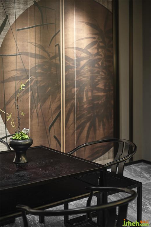 竹元素獨特的藝術氣息和茶空間相融共通,徐州酒店設計營造茶室空間一隅,場域的打造即是氛圍的釀造。