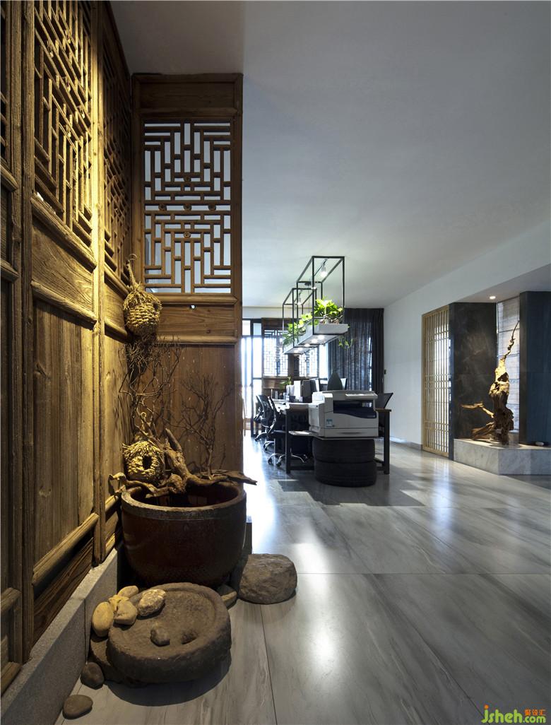 運(yùn)用了中國(guó)文化的“隔”、“障”、“框”、“透”等手法來(lái)分隔組合空間,整體視覺(jué)流暢,半遮半掩的花格和布簾等,隔而不斷,避免了空間設(shè)計(jì)中的死角區(qū)域,保證空間之間的通透性、獨(dú)立性以及連貫性,猶抱琵琶半遮面,中式傳統(tǒng)元素為空間增添些許文化意蘊(yùn)和趣味。