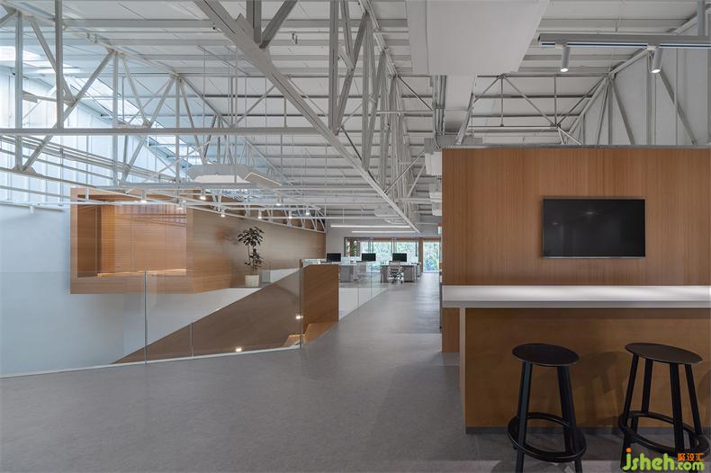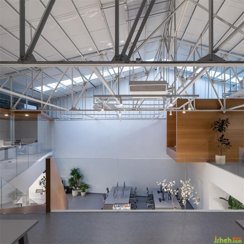 普悅設(shè)計最大限度地保留了原建筑結(jié)構(gòu),辦公室設(shè)計是對歷史的回望和尊重。屋頂?shù)母脑齑蜷_一部分天窗,引入的自然采光勾勒出屋梁鋼結(jié)構(gòu)富有幾何節(jié)奏的線條。光影隨著時間而變,猶如在面向未來時,那些非確定性所帶來的特別體驗。