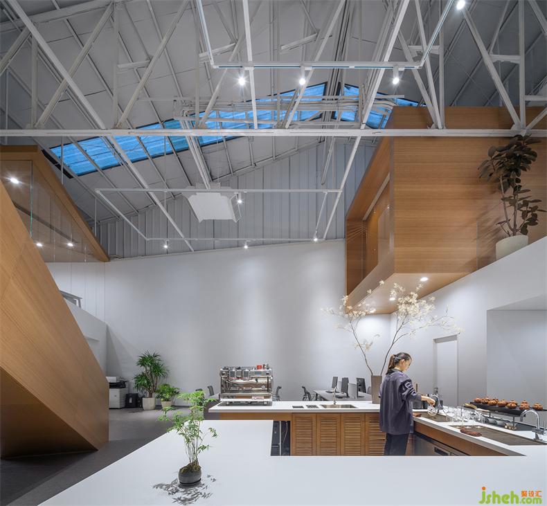 室內(nèi)通過大面積的留白,以倡導(dǎo)自由放松的溝通方式,與溫暖的木色產(chǎn)生對話,溫潤且包容。