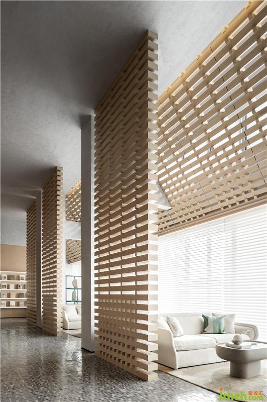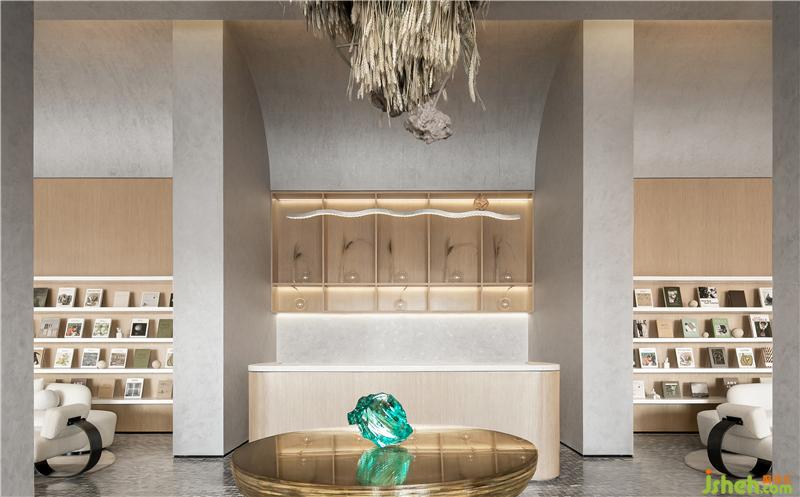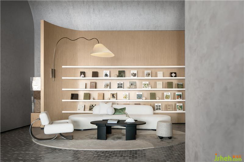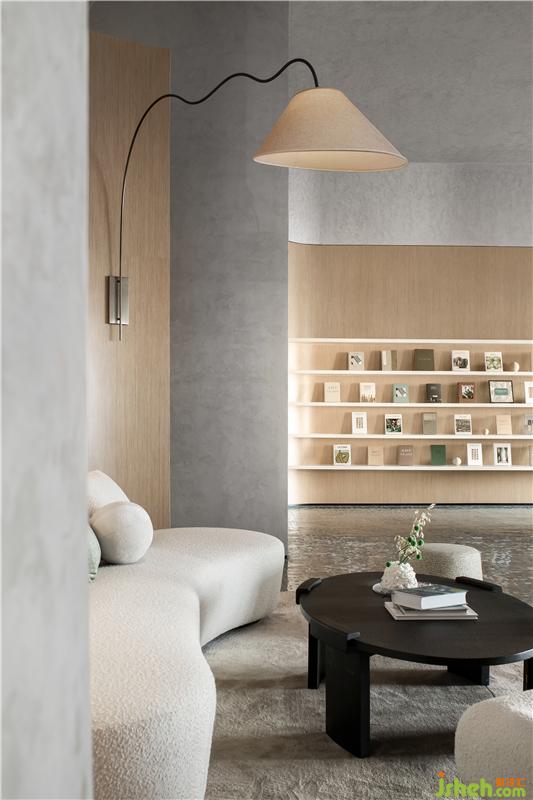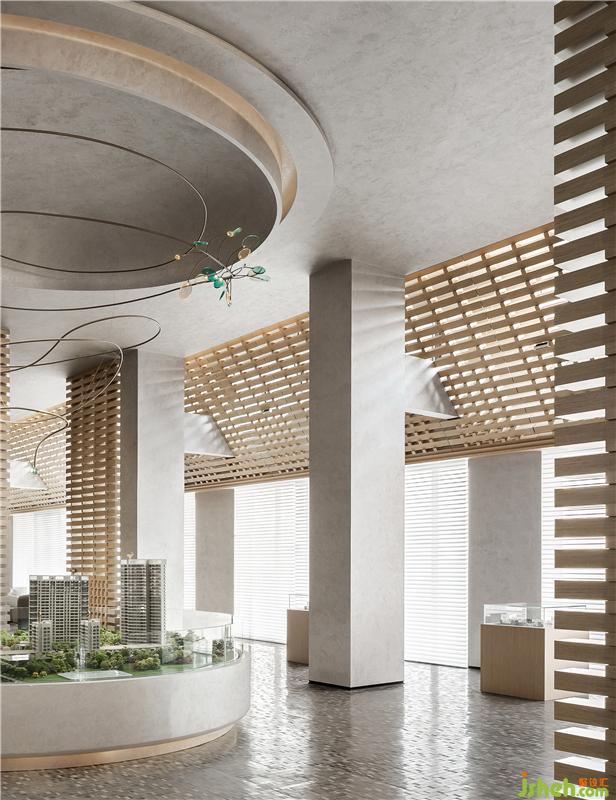 木材的大面積律動應(yīng)用,溫暖而寧靜;立面及頂面定制調(diào)配的藝術(shù)涂料,影影綽綽、細(xì)膩層次的暗紋圖形,奠定了整個空間的柔和性、優(yōu)雅度和親密感深圳售樓處設(shè)計。