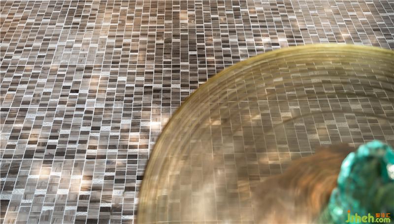 材料的相互和諧、層疊、呼應(yīng),為情緒的緩釋、升起與流轉(zhuǎn)提供了指引。本案選用了大量具有天然親和性、生命力的材質(zhì)及肌理,以喚醒知覺、觸覺、嗅覺等感官的豐富體驗。石材廢料再利用的碎石馬賽克地面,迥別于標(biāo)準(zhǔn)大理石或瓷磚的冰冷感,更為斑斕靈動。