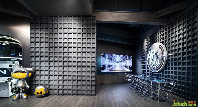 是我們對于未來城市客廳的一個構(gòu)想,整體潮玩運動空間站設(shè)計延續(xù)公區(qū)的冷科技風(fēng),集派對聚餐,休閑、KTV于一體的多功能空間。