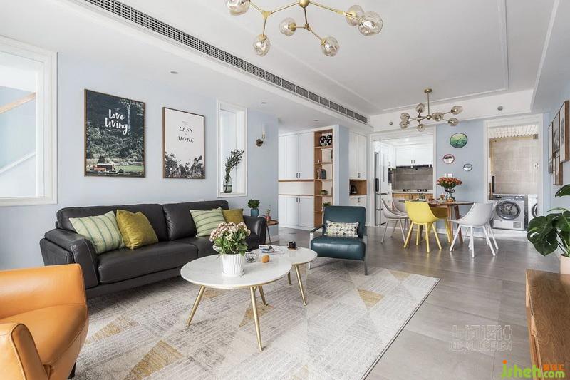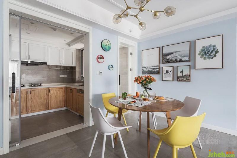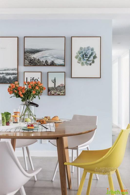 盡管兒子還在上幼兒園,但這個(gè)家的設(shè)計(jì)都有小朋友的意見參與,比如小朋友最喜歡的顏色是藍(lán)色,所以整個(gè)家的主色調(diào)是淡淡的藍(lán)色,再配以黃色和墨綠色搭配,營造清新自然的居家氛圍。