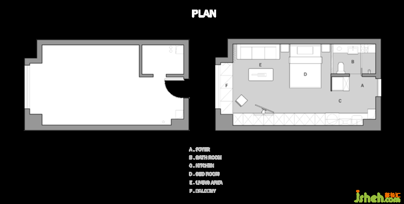 兩邊墻面都是深色,衛(wèi)生間里面包括外面的鞋柜冰箱都是白色??臻g的界面關(guān)系還是比較清晰。
