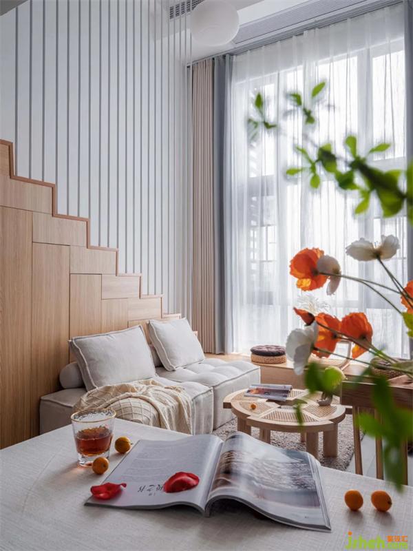 窗戶位置設(shè)計(jì)了飄窗柜,Loft裝修設(shè)計(jì)有了收納的同時(shí)還可以坐在上面看看書。
