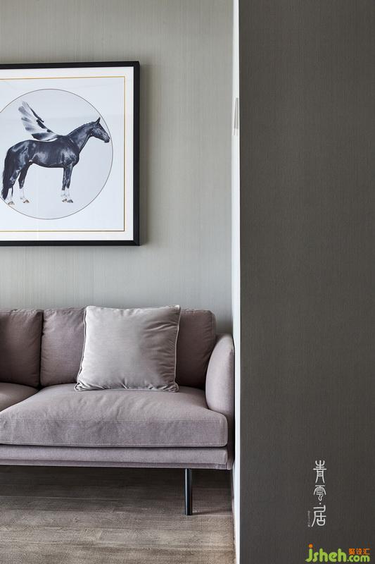 ▲主臥設(shè)計(jì)成了一個(gè)套間,進(jìn)門(mén)處是衣帽間+休息室的結(jié)合,香芋紫沙發(fā)與主臥顏色相互映襯,姜黃色點(diǎn)綴出舒服與活力間的平衡感。臨近陽(yáng)臺(tái)擺放桌椅,光線(xiàn)充足,休息室兼具梳妝臺(tái)的空間。