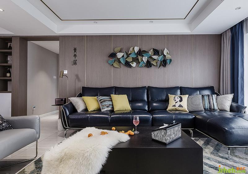 客廳在色彩上通過灰棕與黑白之間的對比協(xié)調(diào)追求一種具有普遍意義的永恒主題。沙發(fā)背景墻用的是飾面板+不銹鋼線條,相對來說比其他材質(zhì)更時尚、溫馨協(xié)調(diào)。