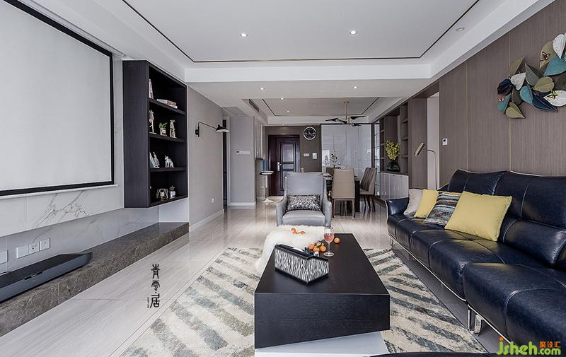 把傳統(tǒng)的電視機換為投影幕布,一家人閑暇時窩在沙發(fā)上看看電影,后面設(shè)計公司采用大理石紋瓷磚上墻,且用大理石做了電視柜。懸掛裝飾柜用來修飾,既不主張追求豪華復(fù)雜風(fēng),而著力表現(xiàn)區(qū)別與其它住宅的區(qū)別。