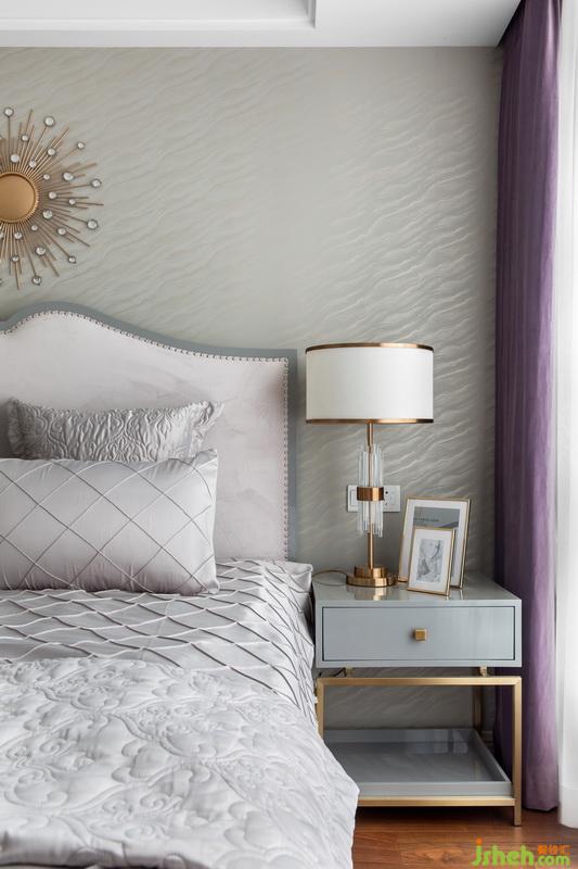 任一角落的欣賞,都如藝術(shù)品般的美麗。整體效果多采用水晶金屬制品來(lái)搭配,以簡(jiǎn)馭繁的藍(lán)灰色床頭柜,讓空間不在彰顯單調(diào)與乏味,大窗戶得以讓光線肆無(wú)忌憚的穿行室內(nèi)。