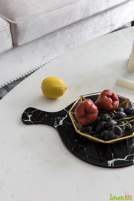 廳風(fēng)格繼續(xù)延伸整體的色系搭配,并再次出現(xiàn)了天鵝絨與金屬的搭配,檸檬與花卉使得典雅精致中帶一些驚喜與活潑感。