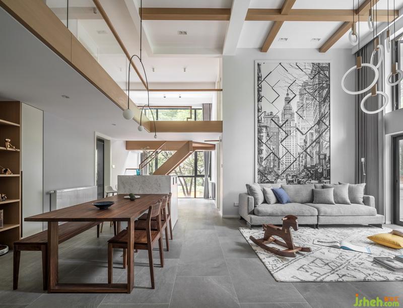 因?yàn)榧抑杏行『⒑烷L輩,在風(fēng)格的選擇上面,中和各成員意見,選擇了現(xiàn)代簡約風(fēng)格,大面積的落地窗,得以讓綠色肆意的展現(xiàn)在家中,穿插原木色,讓整個(gè)家里充滿溫馨感。這種設(shè)計(jì)的美,在于家庭和自然相結(jié)合,低調(diào)而內(nèi)斂又不失沉靜悠然?!凹彝ヅc自然”這個(gè)主題不僅貫穿始終,更是這個(gè)空間的靈魂。