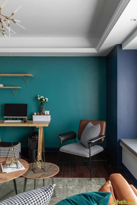 客廳飄窗保留了下來(lái),根據(jù)現(xiàn)場(chǎng)情況在前后兩處制作寬為96公分,深度67公分的柜子。將客廳一角安置電腦桌,上方兩個(gè)置物架,個(gè)性又實(shí)用。