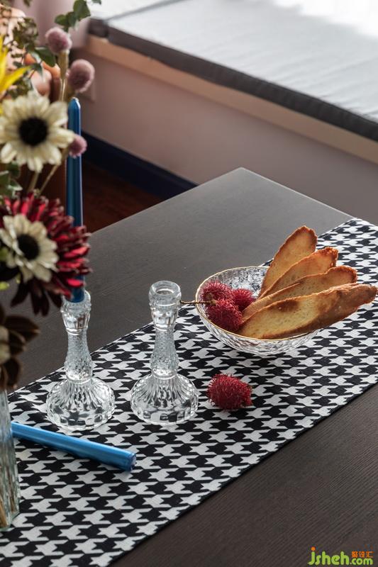 客餐廳開放式設(shè)計(jì),使得空間視覺(jué)上得以延伸。簡(jiǎn)約餐桌椅,精心布置的桌面、裝飾柜,多了些生活中的儀式感,大面積飄窗為空間增加采光度。