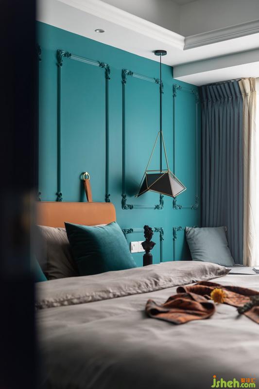 室內(nèi)設(shè)計(jì)師和業(yè)主雙方在前期溝通中,業(yè)主很明確想要將臥室裝扮的個(gè)性不失溫暖,背景墻增加了石膏線條,主色調(diào)延續(xù)了藍(lán)色為主題,讓人留戀不已。