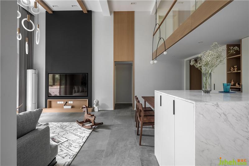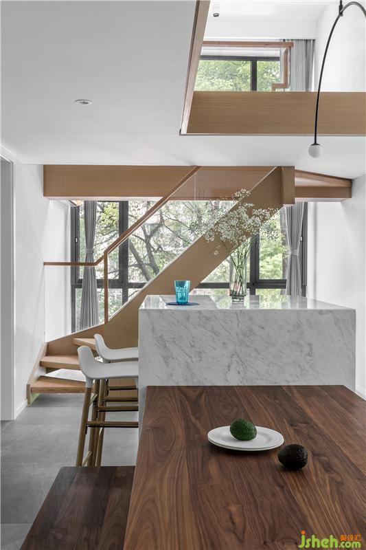 本案室內(nèi)設(shè)計(jì)師非常注重細(xì)節(jié)的設(shè)計(jì),每一處尺寸、物品的擺放如此別致精巧,無(wú)形中美化了餐廳的用餐環(huán)境,視覺(jué)效果非常的讓人驚艷。餐桌與吧臺(tái)相結(jié)合,回歸簡(jiǎn)單的幸福生活,實(shí)木家具具有獨(dú)特清晰的紋理,散發(fā)著木材特有的香氣和來(lái)自森林的自然氣息。注重質(zhì)感的白色大理石吧臺(tái),打破空間,卻又不喧賓奪主,很好的融入其中。