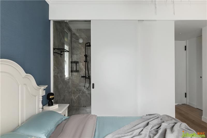 In addition to the glass partition wall in the bathroom in the master bedroom, sliding doors are added to give the space more interactive series.The design of the glass partition wall, the high-latitude integration of light and space, obtains a balance between vision and senses. The setting of sliding doors, in the form of opening and closing, completes the conversion of multiple life scenes, which is also space Added interest.