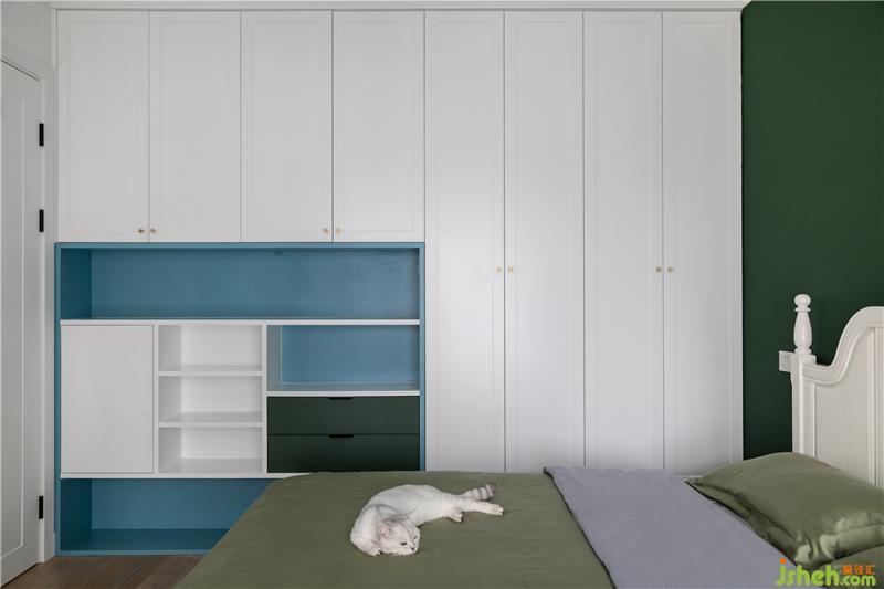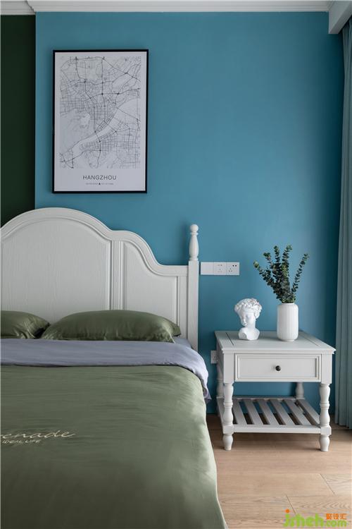 兒童房設(shè)計師選擇用白色打底的空間配上摩登藍和寶石綠形成互補,以藍色作為主打色,綠色作為點綴色,這樣空間里的色彩就不會顯得平均、平庸,而是有主有次。室內(nèi)設(shè)計師