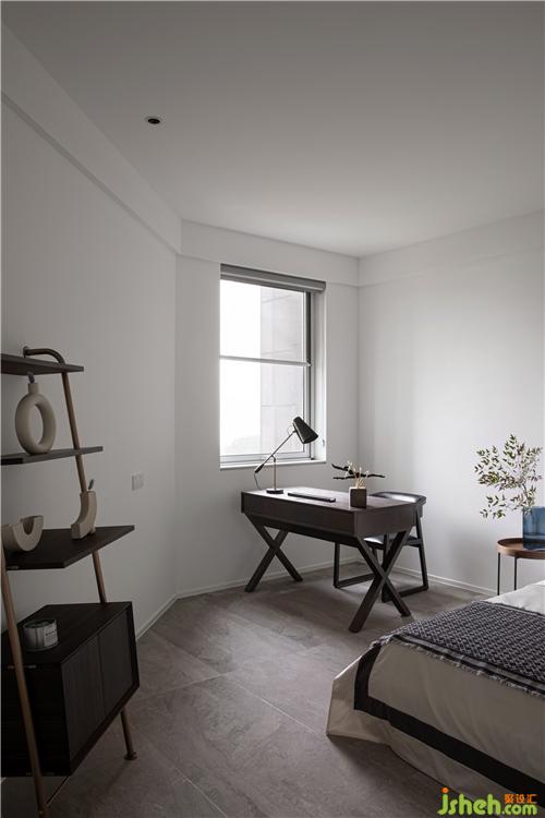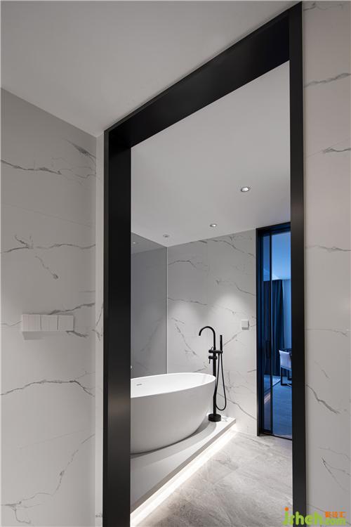 書房與浴缸也只有一“線”之隔,用玻璃隔斷,將主臥室的所有功能間都串聯(lián)起來,增大視覺空間。
